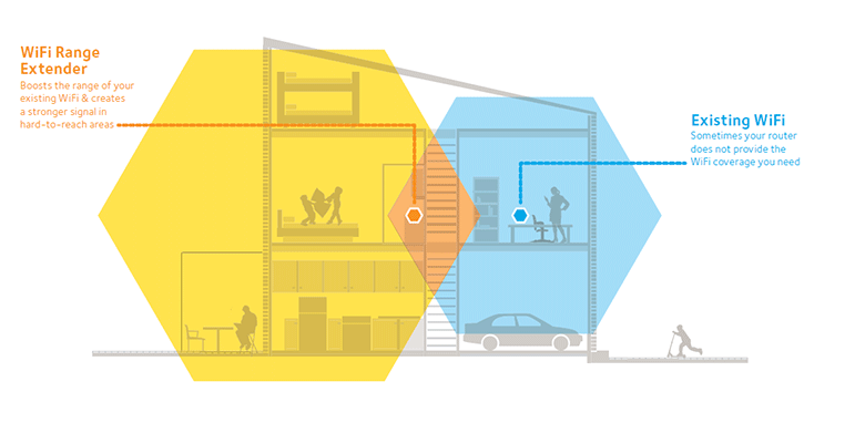 A WiFi extender enhances the existing wireless signal from your router, improving coverage and reducing dead spots.